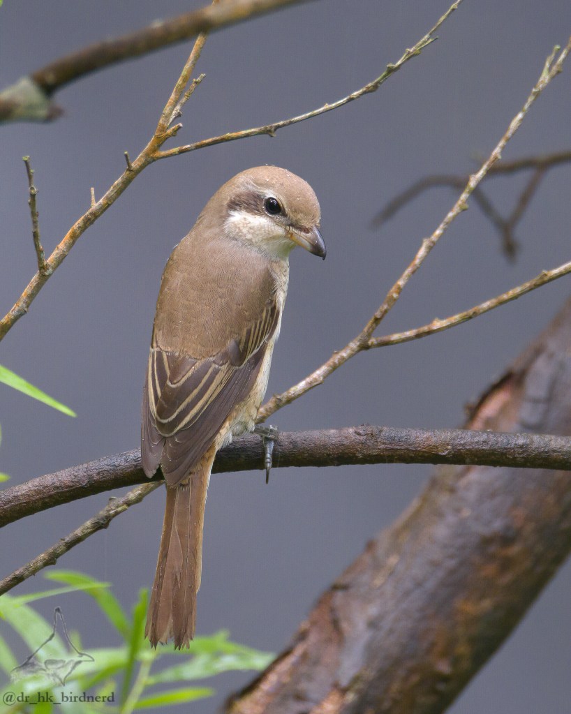 I visited Ho Man Tin this morning to try and find a tiger shrike that’s been there for a few days. Instead, however, I was greeted by a juvenile brown shrike, whose slightly barred plumage on the front and lack of a prominent black eye-stripe possessed by adults did in fact have me fooled at first. Still though, it was a cooperative subject, and I’m glad to have gotten a few record shots, the following being my favorite.