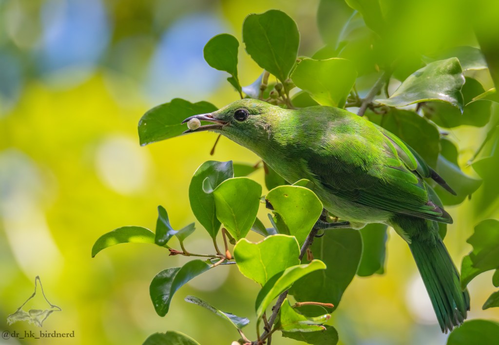 The most photogenic of them all, however, was a lovely female orange-bellied leafbird, perhaps the same from the other day. It was singing with a very high-pitched whistle for a short while, confusing us at first.