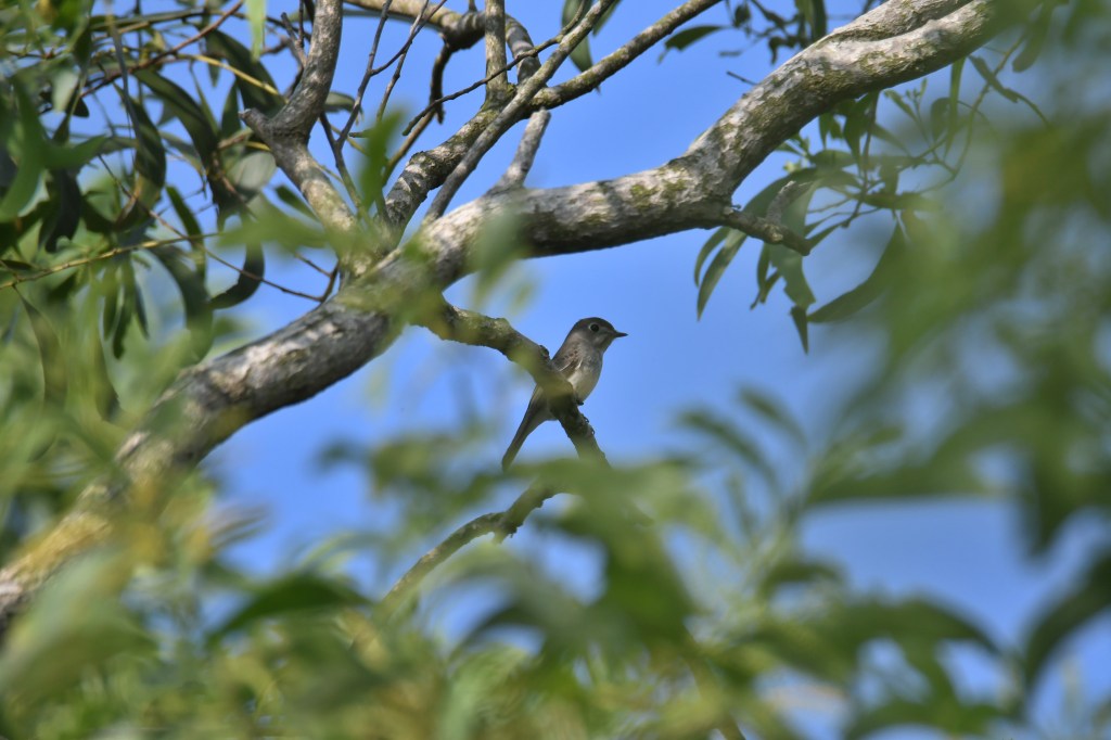 Happily, just before the ferry arrived to take us back, we had a bit of luck at one of the large trees in the village. A dark-sided flycatcher was perched on a rope under the tree, from which it was flycatching. I still don’t have a good shot of this rather common bird this season, so I was excited to have my best chance yet. I’m still not fully satisfied with the results in terms of sharpness, but still they’re way better than nothing!