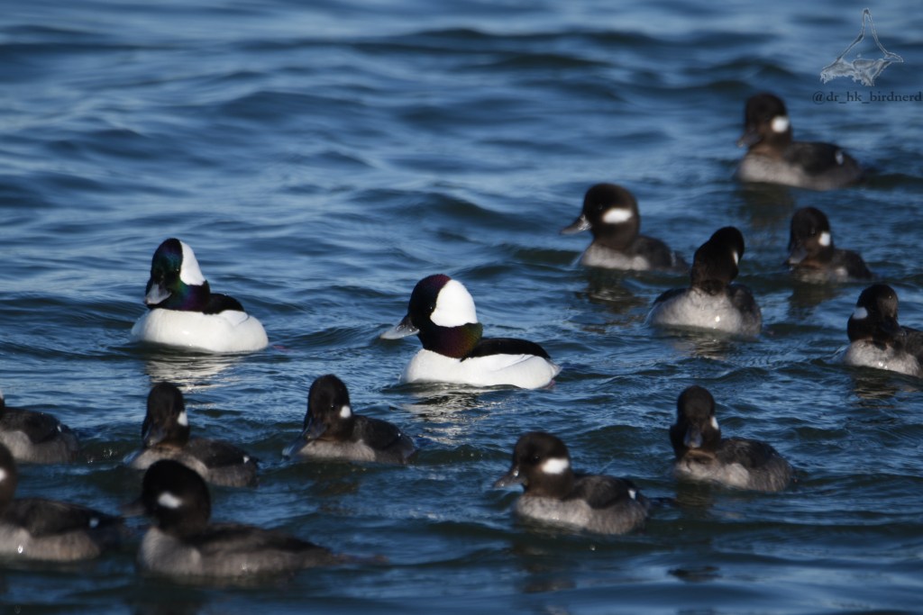 Another duck I saw, which was a bit surprising, was a group of buffleheads. Most of them appeared to be females with only a few prominent males. I was surprised to see them out here since I hadn’t seen them in such typically treacherous waters before, though admittedly it was very calm. Usually I find them in calm lagoons throughout inland waters, mostly males, solitary or in very small groups. To see such a large group of females in the inlet was a bit surprising!