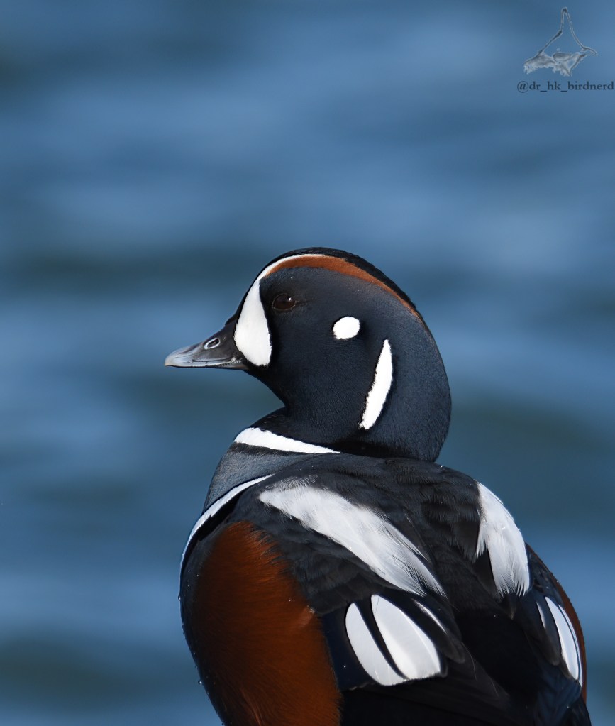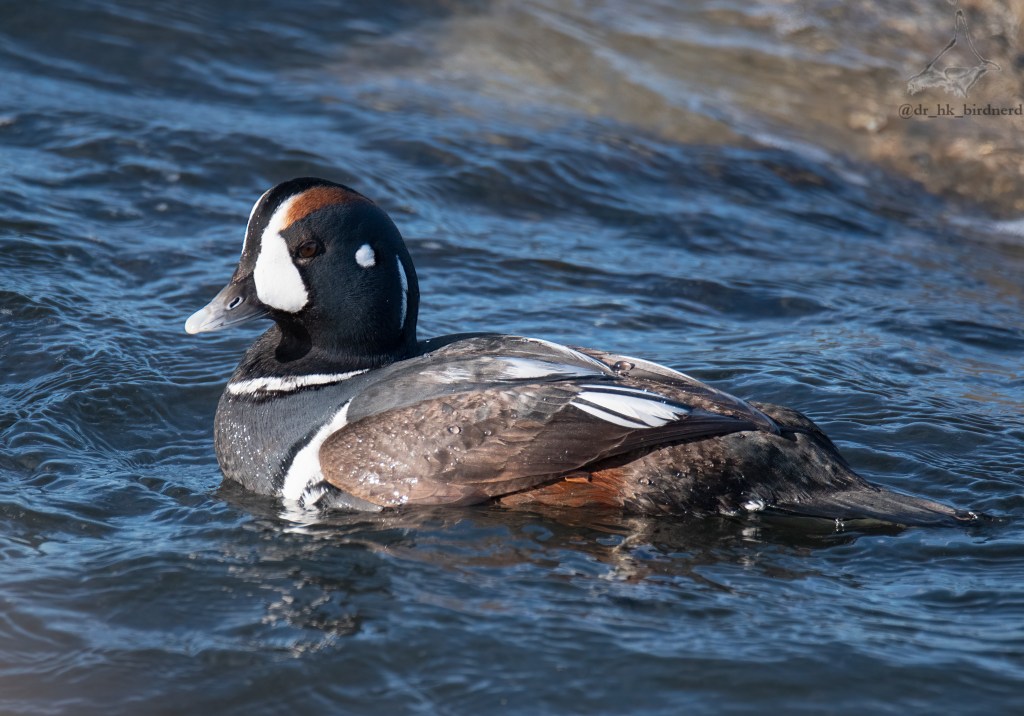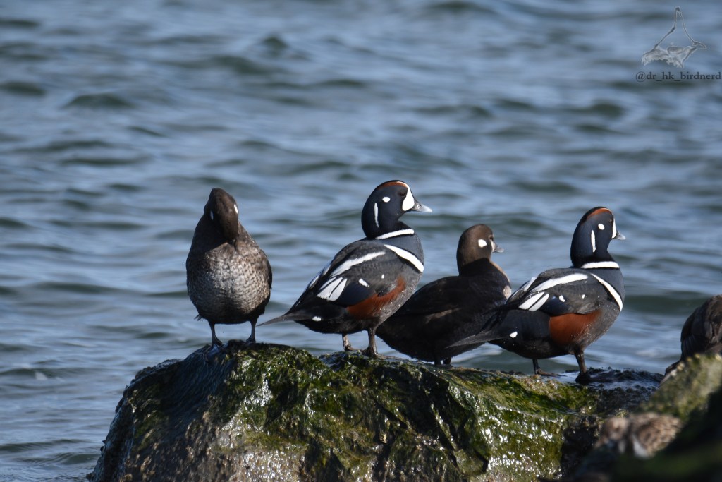 The main event, however, occurred further down the jetty when we saw a tight and noisy group of ducks hanging out right on the rocks: the Harlequins.