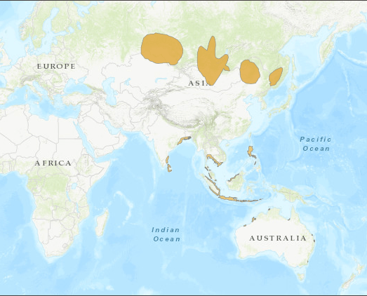 Asian dowitchers breed in inland Siberia and Manchuria in inland wetlands and winter in Southeast Asia and Australia, primarily on the coasts.