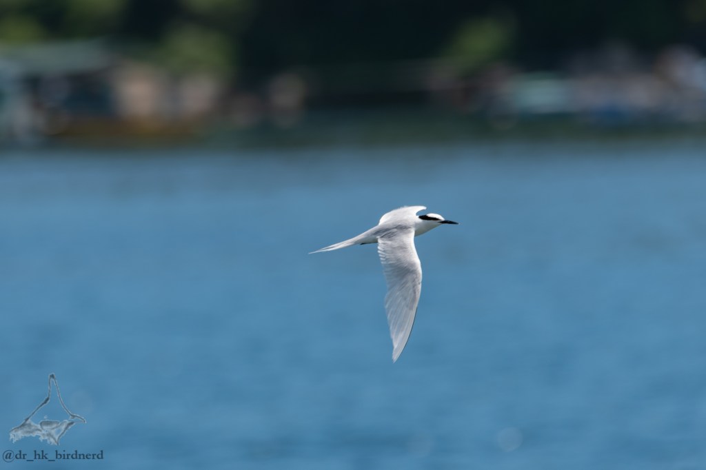 Black-naped terns are medium sized seabirds in the tern subfamily of the larger family, Laridae. Their faces and breasts are snowy white with grayish wings, though the grey is more pronounced in some individuals than in others. The primary of the wing is also black.