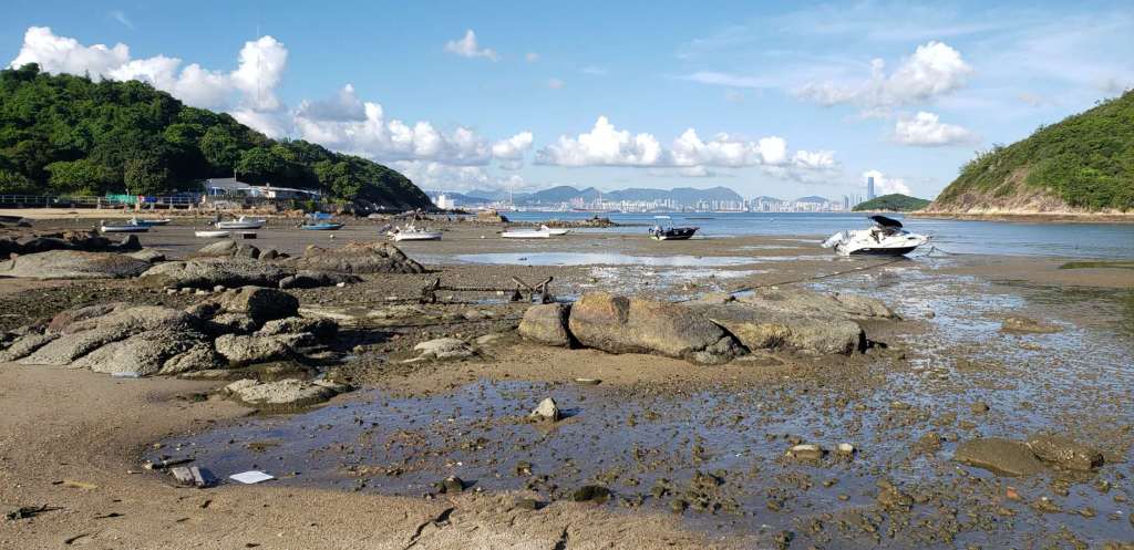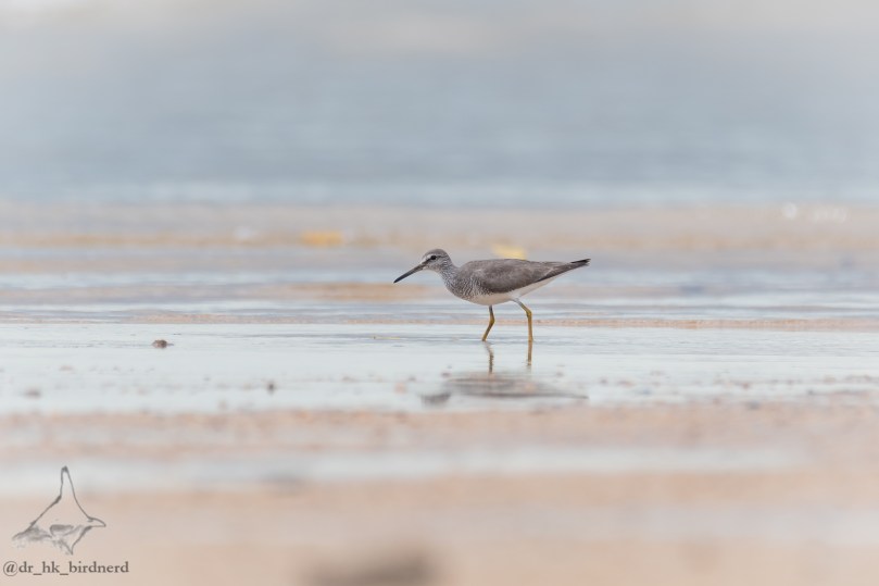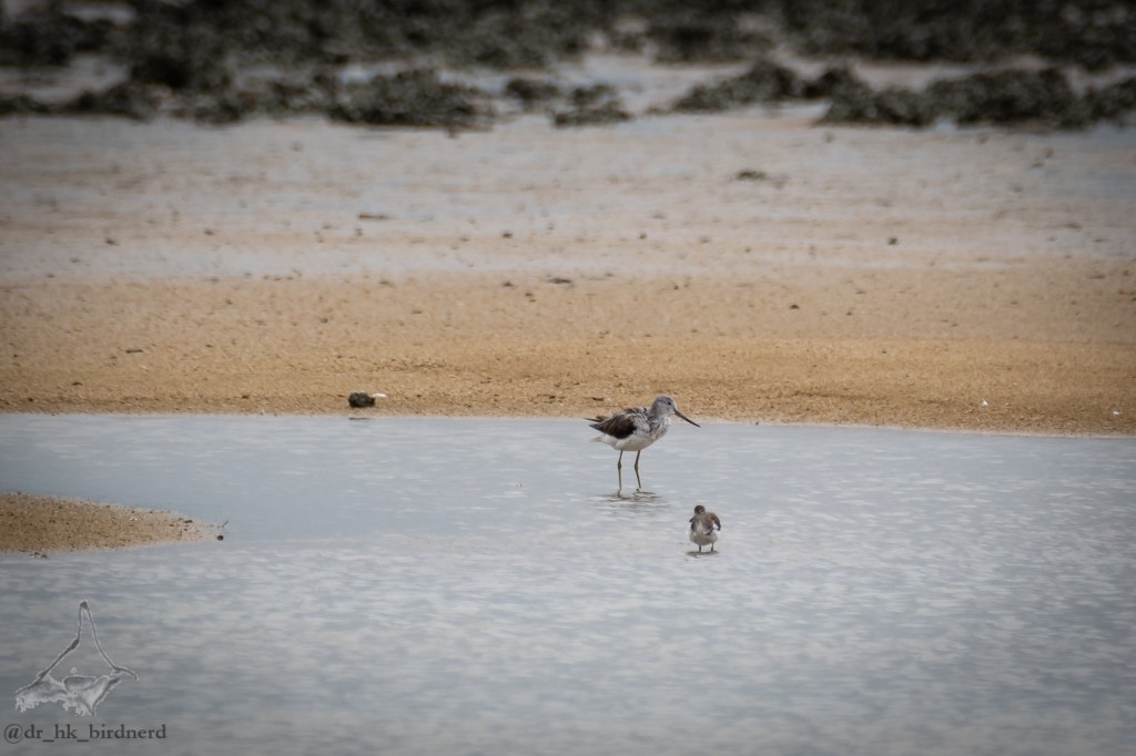 Eventually though we came to the main beach of Peng Chau’s largest cove, and I happened to notice a few waders amid all the crested myna and rubbish.