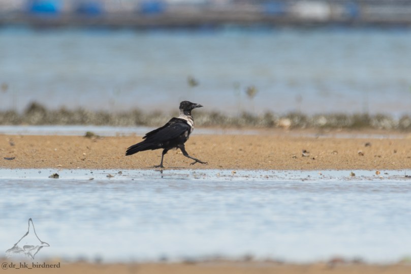 These crows are adapted to farmland and lowland river valleys, though in Hong Kong they also reliably appear in wetlands. They eat mostly small invertebrates, crabs, mollusks, insects, and human refuse, relying less on carrion than other crows.