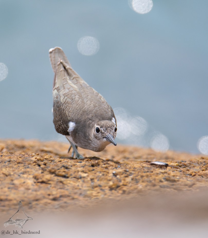 These are generally bicolored birds with plain greyish-brown outer feathers and white feathers underneath, with some slight mixing around the neck and head. The outer feathers are more barred and the overall plumage duller during the non-breeding season, and the feathers of juveniles are also more barred. When foraging, they will characteristically thrust their head and bob their tails.