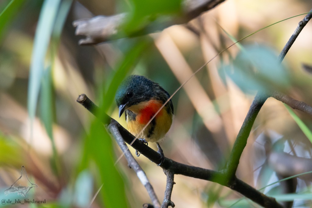 Like many forest birds of Hong Kong, fire breasted flowerpeckers were not recorded in Hong Kong until the 1950s, when Hong Kong’s forests had matured considerably, as these birds are native to mature forests throughout the Himalayas, southern China, and the Southeast Asian mainland.